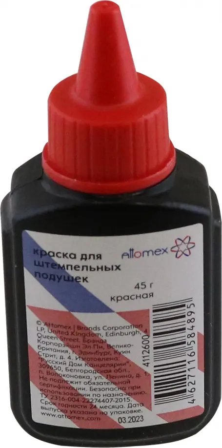 Краска "Attomex" для штемпельных подушек на водной основе 45 г в пластиковом флаконе с дозатором, красная