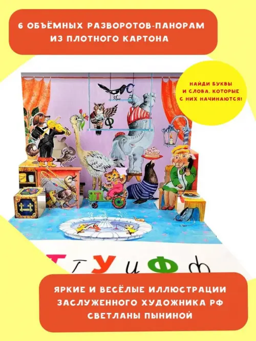В ней буквы не желают просто стоять на страницах — они хотят поиграть с ребёнком в весёлые прятки! А прячутся они в волшебных объёмных картинках, нарисованных и придуманных замечательной детской художницей — Светланой Пыниной.