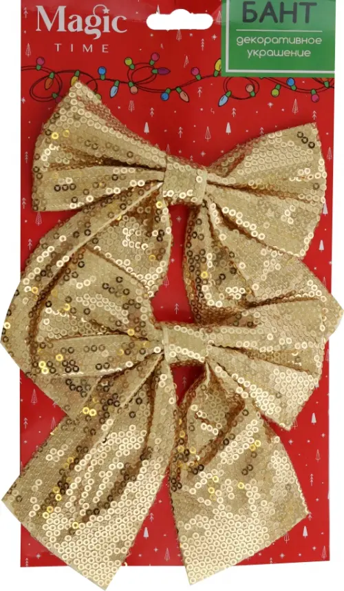 Бант "Золото" - это классическое новогоднее украшение, которое добавит стиля в любом новогоднем убранстве. Банты подходят под любой декор, именно поэтому его так любят и взрослые, и дети. В наборе 2 банта, выполненных из полиэстера.