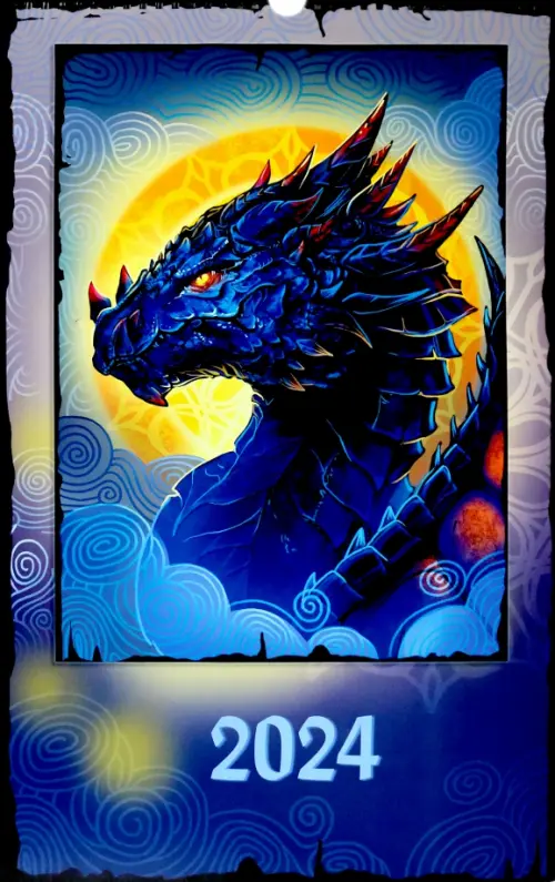 Перекидной календарь с 12 разными драконами, иллюстрации известного художника - Кристины Бородиной