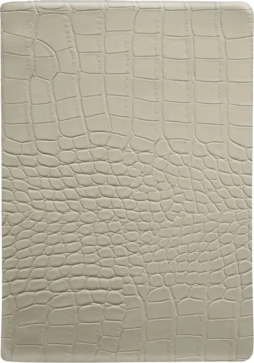 Обложка - интегральная, нежная искусственная кожа, имитирующая фактуру кожи рептилии, цвет - бежевый. Блок - недатированный, 320 стр., скругленные уголки, 2 ляссе, бумага: слоновая кость, скругленные уголки, 70 г/м2, печать 2+2. Особенности: 2 цветных ляссе.