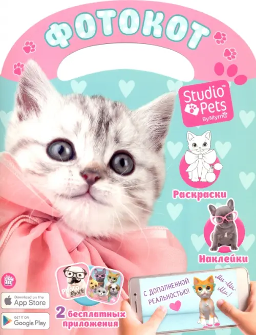 Скачай приложение через Арр Store или Google Play и открой его. Наведи камеру на логотип Studio Pets By Myrna, и твой любимец оживёт прямо на страничке! Его можно гладить, фотографировать и снимать на видео!