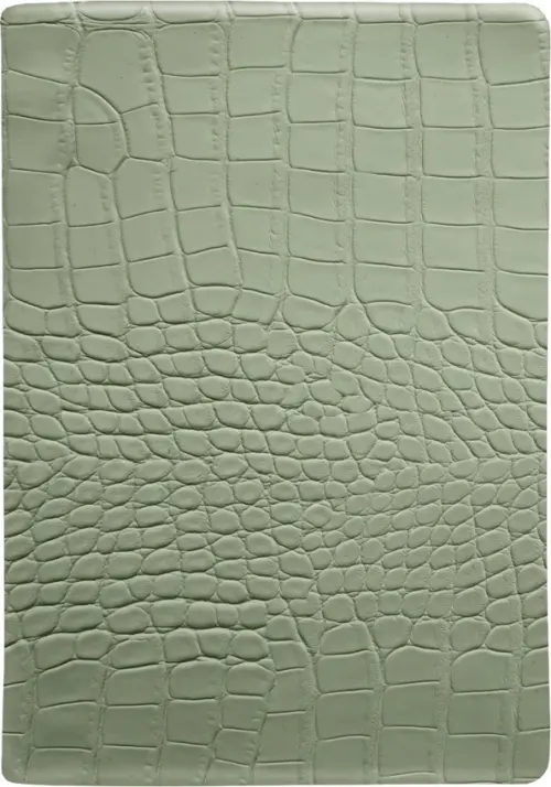 Обложка - интегральная, нежная искусственная кожа, имитирующая фактуру кожи рептилии, цвет - зеленый. Блок - недатированный, 320 стр., скругленные уголки, 2 ляссе, бумага: слоновая кость, скругленные уголки, 70 г/м2, печать 2+2. Особенности: 2 цветных ляссе.