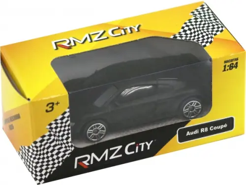 Машина металлическая RMZ City 1:64 Audi R8 Coupe 2019, без механизмов, чёрный матовый цвет.