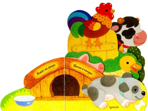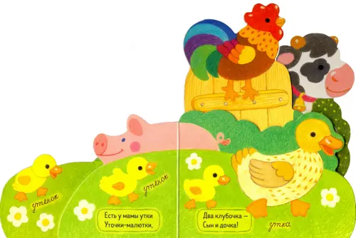 Фигурные книжки серии познакомят малышей с деревенскими животными и растениями в огороде, машинками и игрушками. На каждой фигурной странице все звери, машинки и растения подписаны, а короткие стихи Анастасии Орловой предлагают поиграть: посчитать ягоды на кустах или сказать, "какое слово говорит корова".