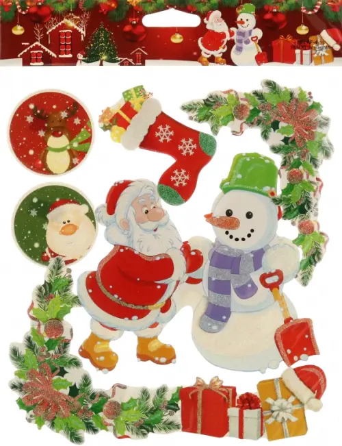 Предлагаем идеи для Вашего дома или офиса. С помощью новогодних украшений праздник станет веселым, смешным и красивым. Забавные 3D-стикеры размером 37*30 см. можно разместить на окнах, дверях или использовать для украшения подарков. Стикеры выполнены из качественного плотного картона с хорошей печатью рисунка. Фигурки на стикерах многослойные крепятся к поверхности клеевыми подушечками, чем достигается 3D-объем. После отклеивания стикеров следы клея на поверхности не остаются.