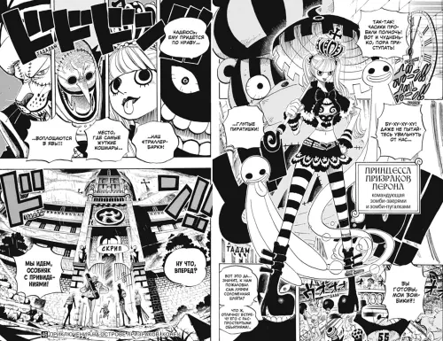 Путешествие Луффи и его соратников продолжается! Освободив Нико Робин из плена СП9, пиратская шайка вновь отправляется в плавание: их следующая остановка – остров Рыболюдей. Однако в море экипаж встречает непогода, и корабль заносит в загадочный Флорианский Треугольник, дьявольские воды, о которых ходит множество жутких легенд. И здесь на пути у команды Соломенной Шляпы возникает Триллер-Барк, плавучий остров призраков...