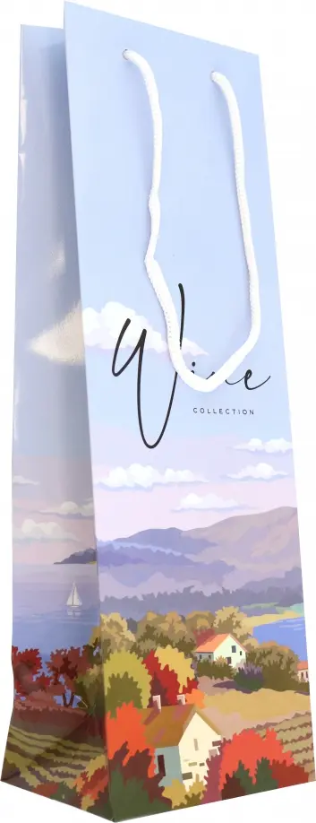 Стильный подарочный пакет MESHU выделит ваш презент из массы других. Размер пакета – 12*36*8,5 см. Продолговатая форма пакета даст возможность положить бутылку шампанского, вина, коньяка и других спиртных напитков. Пакет изготовлен из глянцевого ламинированного картона. Ручки пакета – прочный шнурок.