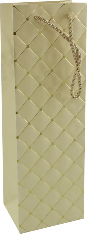 Подарочный бежевый бумажный пакет от торговой марки Perfect Craft отличается особой элегантностью, так как выполнен из дизайнерской однотонной бумаги с тиснением в виде разных геометрических узоров. Данный вариант имеет размер 12*36*9 см.
