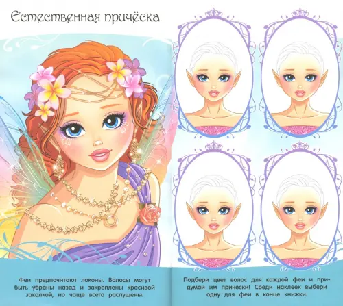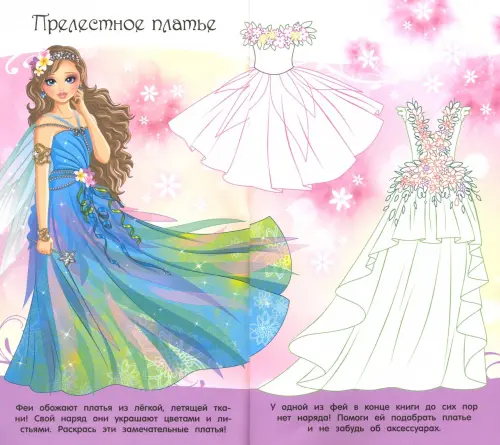 В конце книги под обложкой прячется фея. Этой красавице можно придумать столько волшебных нарядов, примерять разную одежду, украшения и даже менять прическу!