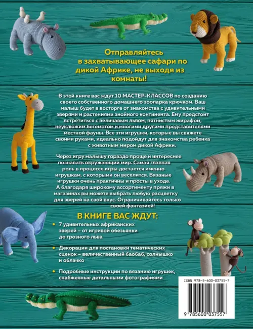 Ему предстоит встреча со львом, жирафом, бегемотом и многими другими представителями местной фауны. Все эти игрушки, которые вы свяжете своими руками, идеально подойдут для знакомства ребенка с животным миром дикой Африки.