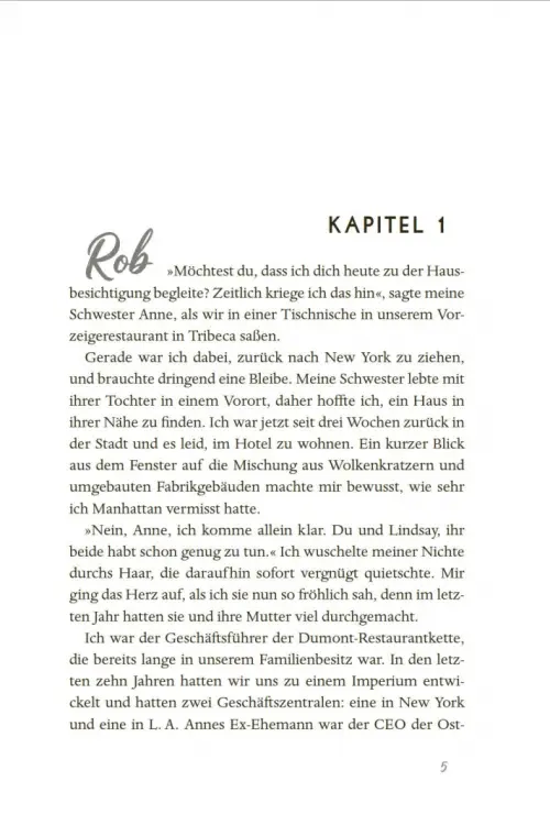 Restaurantbesitzer Robert hat ein Händchen für erfolgreiche Geschäfte. In New York will er sein Business weiter vorantreiben, eine Beziehung passt hingegen nicht in seinen vollen Terminkalender. Doch als er seine neue Nachbarin Skye kennenlernt und mit ihr glühende Blicke austauscht, ist er sofort hingerissen von der engagierten Geschäftsfrau. Immer wieder muss er an sie denken und er erkennt: Sie ist die Eine. Aber Skye hat ihre Gründe, warum sie ihn nicht zu nah an sich heranlässt. Kann Robert die Distanz überwinden und doch noch Skyes Herz gewinnen?