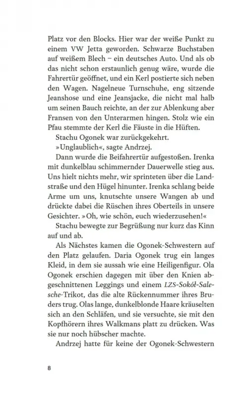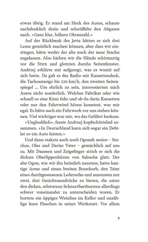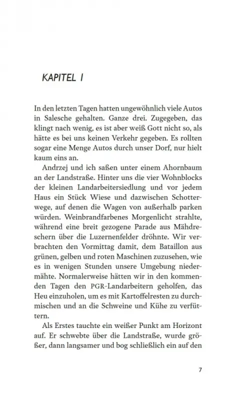 Salesche, ein Dorf in Polen 1990: Jarek und seine Eltern packen ihre Sachen. Sie wollen nach Deutschland aussiedeln, so wie Oma Agnieszka, die acht Jahre zuvor die Flucht angetreten hatte. Doch wovor war sie wirklich geflohen? Niemand will es dem 14-Jährigen sagen. Als Jarek ins Schlepperauto steigt, das sie von Schlesien über die Grenze bringen soll, weiß er nur eins genau: Er wird nicht zurückkehren. Im sich wiedervereinigenden Deutschland, sagt man ihm, warte ein besseres Leben. Doch statt zu Agnieszka nach Hannover zu fahren, geht es für die Sobotas schnurstracks in die Aussiedlerlandestelle Hamm, um dort ihre Anträge zu stellen. Und auch nachdem sie die Aufnahmebestätigung in Deutschland erhalten, rückt das Wiedersehen mit der Großmutter in immer weitere Ferne. Jarek beginnt, dem Schweigen seiner Eltern zu misstrauen, bis sich am ersten Weihnachtsabend im „gelobten Land“ die Teile des Familienpuzzles plötzlich folgenreich ineinanderfügen.