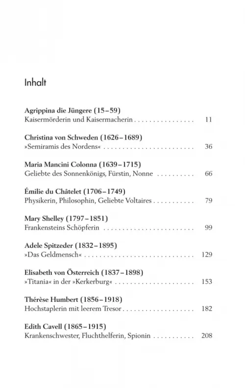 Kaiserin Sisi war für eine ganze Epoche Vorbild und Rätsel zugleich, Thérèse Humbert brachte als Hochstaplerin mit leerem Tresor den französischen Staat an den Abgrund und Greta Garbo verkörpert bis heute die Femme fatale. Obwohl sie Schläue und Unangepasstheit demonstrierten, hatte jede dieser beeindruckenden Frauen ein schicksalhaftes Geheimnis. In zwölf klugen und spannenden Biografien werden beeindruckende Lebenswege nachgezeichnet, wenig bekannte Tragödien enthüllt und große Schicksale beschrieben, die unsere Welt prägten.