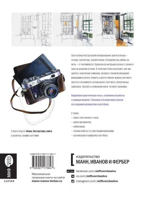 Скетчи Анны Расторгуевой необыкновенно притягательны - сочные, яркие, элегантные. От брокколи до резного тронного зала на далеком острове. Ей подвластны любые сюжеты. В этой книге Анна расскажет, как преодолеть творческую робость и начать рисовать.
