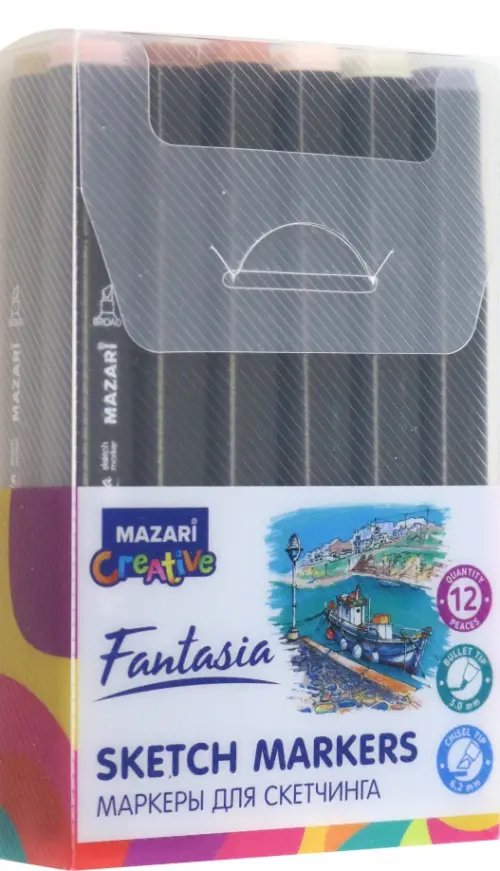 Набор маркеров для скетчинга двусторонние FANTASIA, 12цв., Skin + Wood colors (телесные + древесные цвета), пулевид./клиновид. наконечники, пиш.узлы 3.0-6.2мм, ПВХ- упаковка