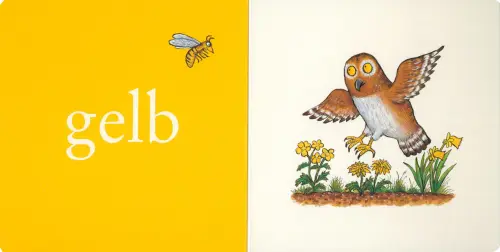 Kennst du schon die Farben? Ein Pappbilderbuch für kleine Pfoten ab 12 Monaten. Erkennen und erstes Benennen mit Motiven aus dem berühmten Grüffelo-Bilderbuch. In derselben Ausstattung gibt es auch die Pappbilderbücher "Zahlen", "Gegensätze" und "Geräusche und Bewegungen".