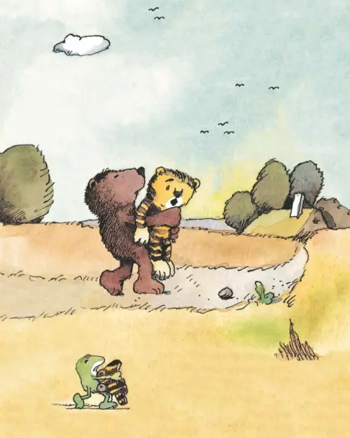 Eines Tages wird der kleine Tiger krank. Der kleine Bär ist schnell zur Stelle und hilft seinem Freund. Sogar ins Krankenhaus begleitet er ihn. Nach Abhören und Röntgen zeigt sich: ein Streifen ist verrutscht! Also gibt es eine kleine Spritze, einen blauen Traum – und siehe da: nach der Operation ist der kleine Tiger wieder ganz der Alte. Alles halb so schlimm! Eine der schönsten, ewig gültigen Tiger und Bär - Geschichten von Janosch, denn sie macht gesund, wenn es uns schlecht geht.