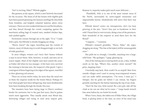 Sixteen-year-old Deka lives in Otera, a deeply patriarchal ancient kingdom, where a woman's worth is tied to her purity, and she must bleed to prove it. But when Deka bleeds gold - the colour of impurity, of a demon - she faces a consequence worse than death. She is saved by a mysterious woman who tells Deka of her true nature: she is an Alaki, a near-immortal with exceptional gifts. The stranger offers her a choice: fight for the Emperor, with others just like her, or be destroyed...
