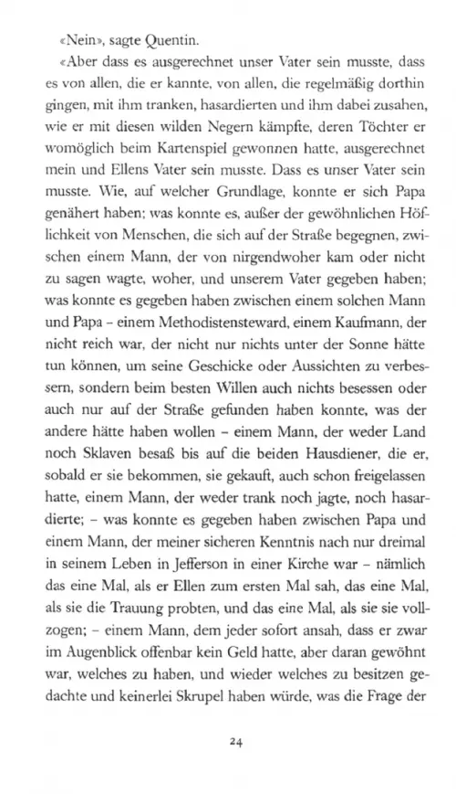 All das kommt bruchstückhaft vor die Augen des Lesers, mit großen Zeitsprüngen und einer Erzähltechnik, die den amerikanischen Roman revolutioniert und zahlreiche Schriftsteller weltweit beeinflusst hat. Es geht um Schuld und Schuldgefühle der Sklavenhaltergesellschaft, den unmöglichen Versuch, die Niederlage im Bürgerkrieg als notwendig zu erkennen, die Macht des Geldes und die Verwüstungen, die es anrichtet. Es ist ein phantastisches Zeitbild, heute so modern und aktuell wie damals.