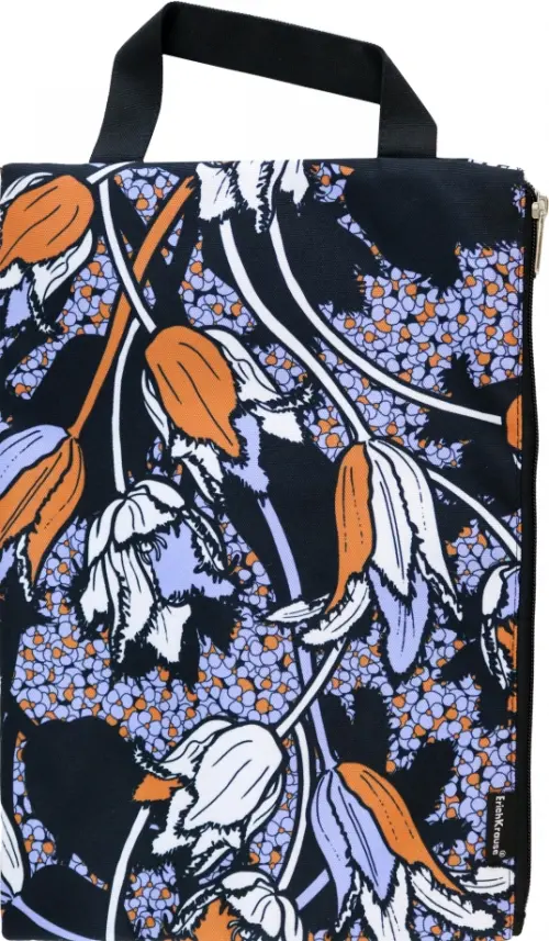 Папка текстильная на молнии Tulips, вертикальная, с ручкой, A4