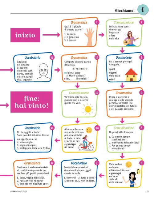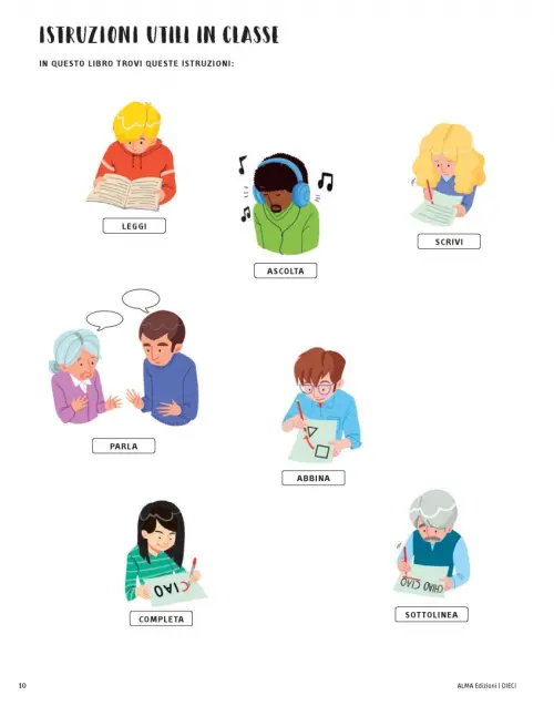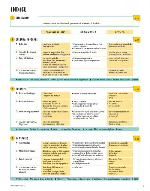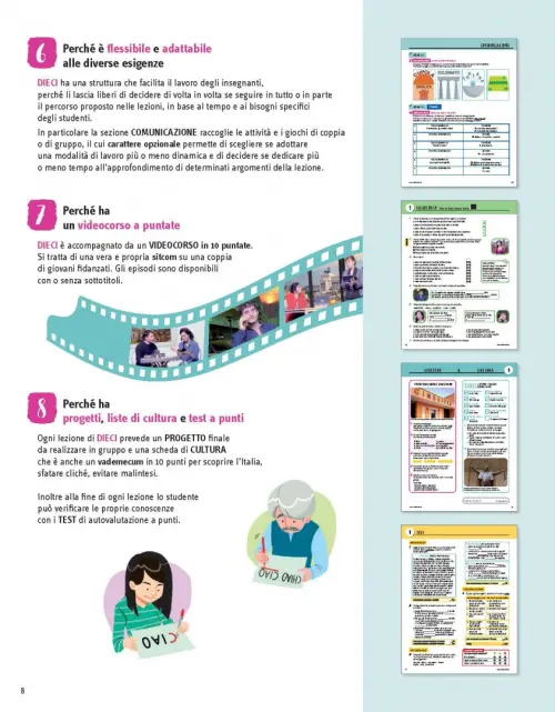 DIECI è un nuovo corso di lingua italiana per stranieri diviso in 4 livelli (A1, A2, B1, B2).