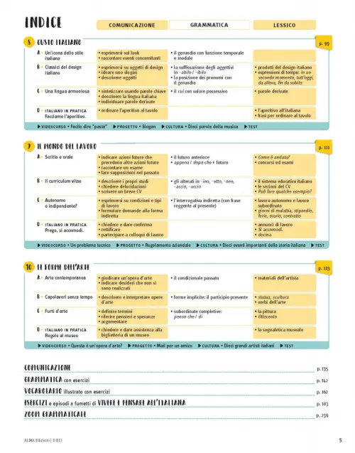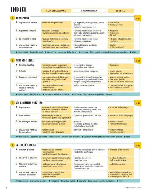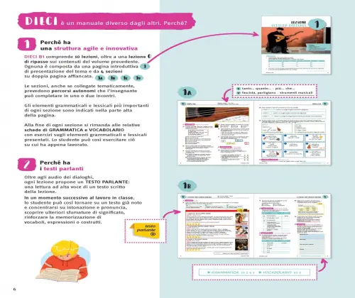 Propone una struttura innovativa che prevede per ogni volume 10 lezioni divise in sezioni su doppia pagina.