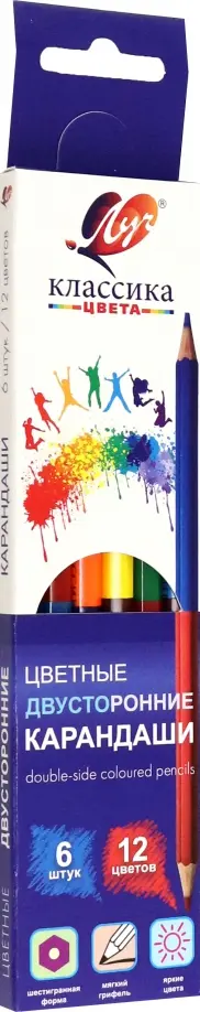 Если вы обнаружили ошибку в описании товара «Карандаши цветные Классика, двусторонние, 6 штук, 12 цветов», то выделите её мышкой и нажмите Ctrl+Enter. Спасибо, что помогаете нам стать лучше!