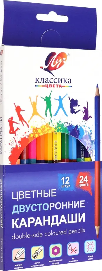 Если вы обнаружили ошибку в описании товара «Карандаши цветные Классика, двусторонние, 12 штук, 24 цвета», то выделите её мышкой и нажмите Ctrl+Enter. Спасибо, что помогаете нам стать лучше!