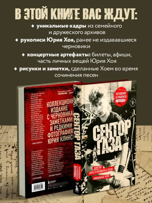 «Эту книгу мы с трепетом готовили для всех почитателей и поклонников группы „Сектор Газа“. На ее страницах вас ждут приятные сюрпризы — возможность впервые увидеть тексты неизданных песен, эксклюзивные фотографии, в том числе раритетный студийный фотосет, который ранее не был опубликован. Но самое главное, у вас появился повод вновь перечитать тексты (теперь уже в первоисточнике), которые несут в себе аутентичность и флер того времени, когда города были увешаны афишами с надписями, которых сейчас так не хватает: „Сектор Газа. Солист Юрий Клинских (Хой)“»,