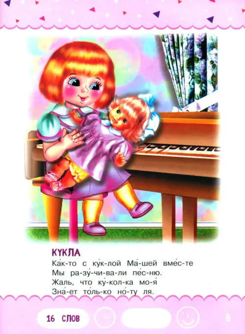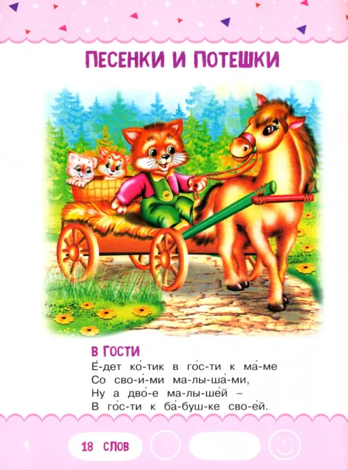 Забавные песенки, стишки и потешки, которые легко запомнить и прочитать, понравятся малышам. В каждом стишке не более 40 слов. Все слова в книгах серии "Тренажер для чтения" разбиты на слоги для более легкого освоения навыка чтения. В них также расставлены ударения в соответствии с литературной нормой. Яркие иллюстрации сделают процесс чтения еще более увлекательным.