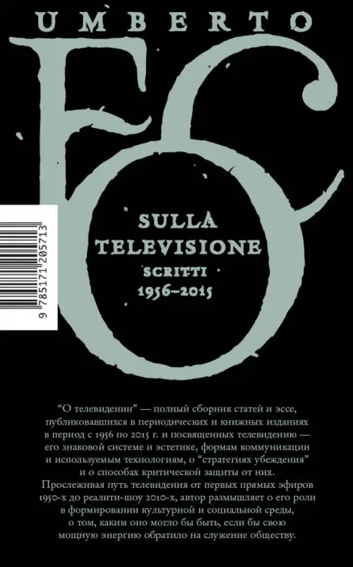"О телевидении" — полный сборник статей и эссе, публиковавшихся в периодических и книжных изданиях в период с 1956 по 2015 г. и посвященных телевидению — его знаковой системе и эстетике, формам коммуникации и используемым технологиям, о "стратегиях убеждения" и о способах критической защиты от них.