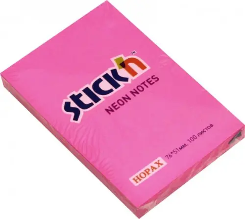 Блок для записей самоклеящийся (100 листов, 51x76 мм, неоновый малиновый) (21162)
