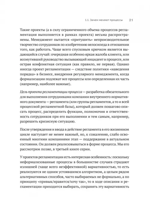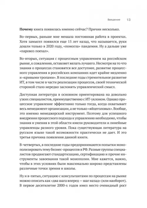 Издание содержит теорию изменения (трансформации) процессов и описание вопросов управления ими, сопровождающуюся примерами реальных проектов и компаний, упражнениями для применения материала на практике, а также пошаговой инструкцией для реализации процессного подхода в организации. Основной фокус книги: методы проведения диагностики, анализа, совершенствования и реинжиниринга процессов, их внедрение и функционирование процессной организации. Обзор методов анализа процессов - наиболее полный из всего, что ранее было опубликовано по этому вопросу.
