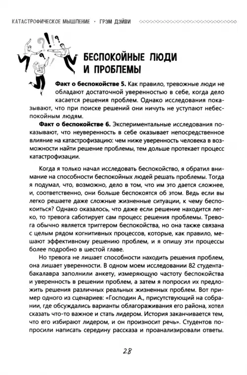 В этой книге Грэм Дэйви описывает многолетние исследования в области катастрофического мышления. Он и сам когда-то страдал от бесконечной тревоги и панических атак, но сумел найти выход. И теперь Грэм Дэйви уверен — сделать это намного проще, чем нам кажется. Катастрофическое мышление — это выученное поведение, от которого мы можем избавиться при помощи когнтивно-поведенческой психотерапии.