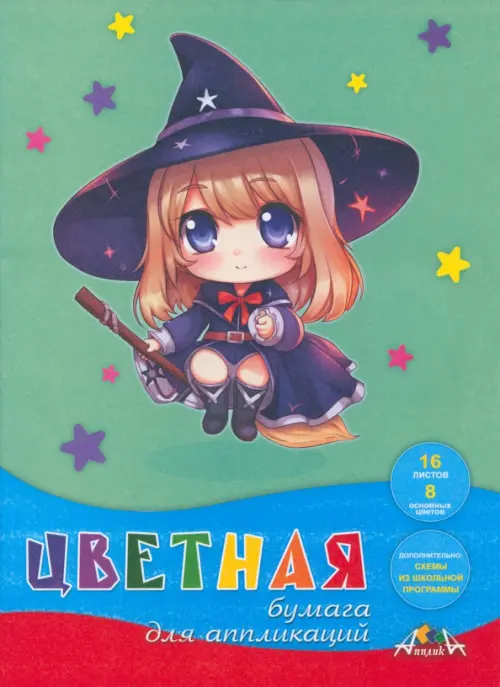 Бумага цветная для аппликаций Маленькая волшебница, А4, 8 цветов, 16 листов