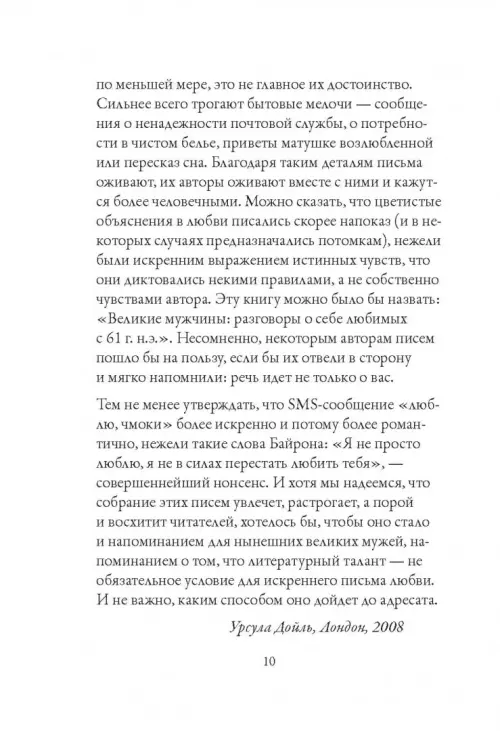 Читая любовные письма великих людей, мы понимаем, что человечество, в сущности, мало изменилось за последние две тысячи лет. Страсть, ревность, надежда - все эти эмоции мы найдем здесь наравне с простым удовольствием послать письмо и получить ответ от человека, которого ты любишь больше всего на свете. Мы увидим, что литературный талант - необязательное условия для искреннего письма любви, и совсем не важно, в какой форме оно написано и каким способом дойдет до адресата.