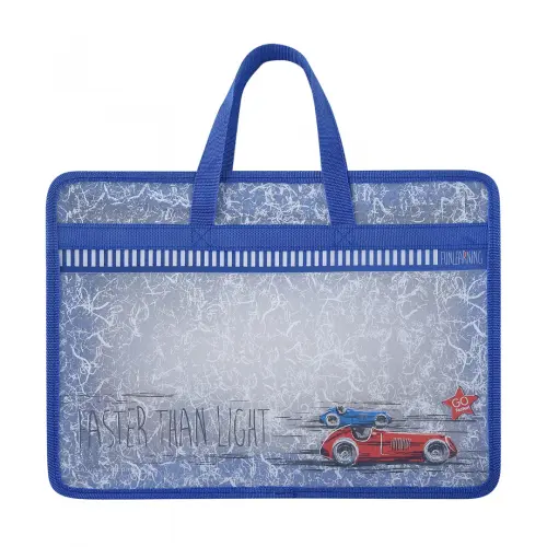 Папка-портфель на молнии формата А4 для хранения, транспортировки школьных принадлежностей, различного типа документов. Папка изготовлена из полупрозрачного полимерного материала толщиной 0,4 мм. Папка привлекает к себе внимание благодаря авторскому дизайну, фольгированным элементам, контрастному текстильному канту по периметру и широким ручкам.