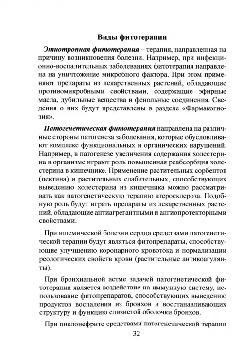 Второе издание, дополненное. Книга содержит материалы лекций циклов по фитотерапии, проводимых в Российской медицинской академии непрерывного профессионального образования. В ней изложены «Основы фармакогнозии» – науки о лекарственных растениях, данные о технологии приготовления фитофармацевтических средств и ароматерапии. В разделе «Частная фитотерапия» отражен патогенетический и дифференцированный подход к фитотерапии наиболее распространенных заболеваний с учетом конституции пациента по принципу «лечи больного а не болезнь».