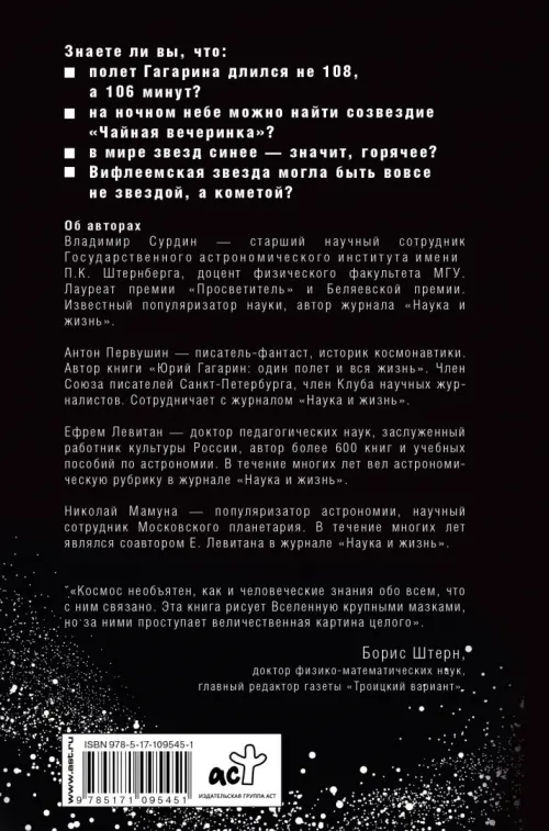 Если вы обнаружили ошибку в описании товара «Космос. Прошлое, настоящее, будущее» (авторы: Левитан Ефрем Павлович, Сурдин Владимир Георгиевич, Первушин Антон Иванович), то выделите её мышкой и нажмите Ctrl+Enter. Спасибо, что помогаете нам стать лучше!