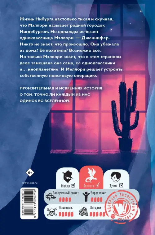 Жизнь Нибурга настолько тихая и скучная, что Мэллори называет родной городок Нигдебургом. Но наступает день, когда событий становится так много, что это изменяет жизнь всех, кто сколько-нибудь коснулся происходящего: исчезает одноклассница Мэллори — Дженнифер. Возможно, она убежала из дома. Возможно, её даже похитили. Возможно, виноват кто-то из близких. И Мэллори точно знает, что все эти версии отчасти верны и что в этом странном деле замешана она, её одноклассники и… инопланетяне. Меллори решается устроить собственную поисковую операцию. Пронзительная и искренняя история о школьной травле, вере в невозможное и о том, каким ты видишь себя и каким тебя видят другие.