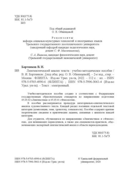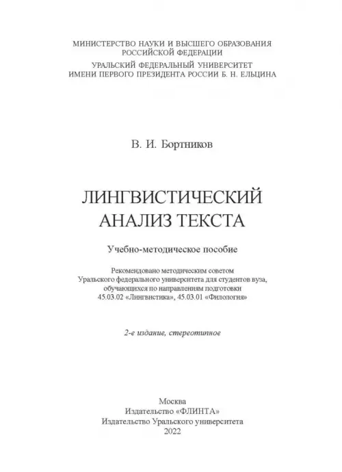 Если вы обнаружили ошибку в описании товара «Лингвистический анализ текста. Учебно-методическое пособие» (авторы: Бортников Владислав Игоревич), то выделите её мышкой и нажмите Ctrl+Enter. Спасибо, что помогаете нам стать лучше!