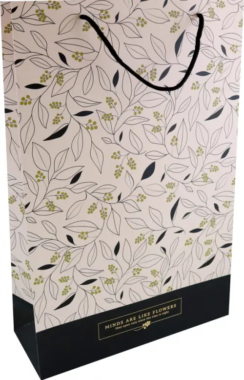 Пакет подарочный с подгибкой, с веревочными ручками. Пакет из картона 200 г/м2 с матовой ламинацией. Размер пакета 32*49 см с глубиной 12 см. Грузоподъемость 3-4 кг. Тематика: женская, 8 марта.