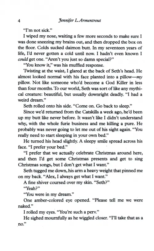 Alex still has feelings for Aiden, even though he's a pure-blood...and therefore forbidden. Meanwhile, she's been 'training' with her fellow Apollyon Seth - though really that's just Seth's code word for some up-close-and-personal time. After every session Alex ends up with another mark of the Apollyon, which brings her one step closer to her Awakening ahead of schedule. Awesome.
