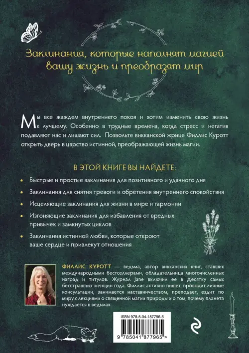 Филлис Куротт - ведьма, автор викканских книг, ставших международными бестселлерами, обладательница многочисленных наград и титулов. Журнал Jane включил ее в Десятку самых бесстрашных женщин года. Филлис активно пишет, проводит личные консультации, занимается наставничеством, преподает, ездит по миру с лекциями о священной магии природы и о том, почему планета нуждается в ведьмах.