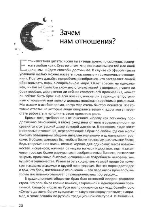 На ранних этапах отношений мир кажется прекрасным, ведь царит полная гармония и умиротворение, мы замечаем в партнере только самое лучшее. Спустя некоторое время яркие краски влюбленности немного блекнут: мы начинаем понимать, что у нашего партнера есть привычки, которые не совсем согласуются с нашими. Из-за этого могут возникать недопонимания, а порой даже конфликты. Иногда силы любви может и не хватить, чтобы решить эти противоречия, и мы расстаемся с человеком, который совсем недавно казался нам идеальным. Затем долго залечиваем свои душевные раны и снова пытаемся найти того, кто соответствовал бы нашим ожиданиям и кто принял бы нас полностью. Хорошие новости заключаются в том, что мы можем избежать такого сценария. В этом нам может помочь астрология, которая позволит лучше разобраться в себе, своих потребностях и желаниях. А если мы рассмотрим натальную карту партнера, то поймем, как лучше общаться с ним, какой у него стиль мышления, а также бессознательные паттерны, которые он привносит в отношения. Все это позволит вам раскрыть новые грани своей личности. Вы узнаете как свои психологические особенности, так и (при желании) окружающих вас людей. Все это поможет вам сделать ваше общение гармоничным и умиротворенным. "Погружаясь в астрологическое знание, мы начинаем осознавать, что даже если на внешнем плане присутствует хаос событий, на внутреннем жизнь движется согласно тонким и пока необъяснимым законам. И в этом мире мы - не случайный гость. Нередко бывает так, что, желая разобраться в отношениях, человек в конечном счете приходит к себе, открывая тайну особой любви к миру, в котором ему повезло родиться". Марина Троицкая