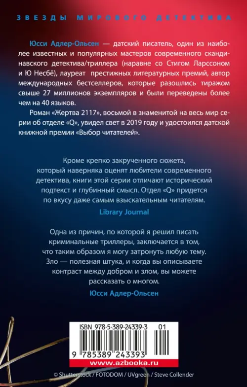 Если вы обнаружили ошибку в описании товара «Жертва 2117» (авторы: Адлер-Ольсен Юсси), то выделите её мышкой и нажмите Ctrl+Enter. Спасибо, что помогаете нам стать лучше!