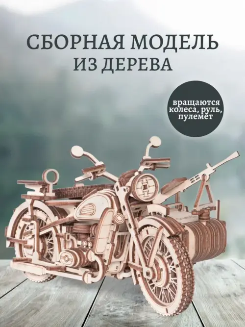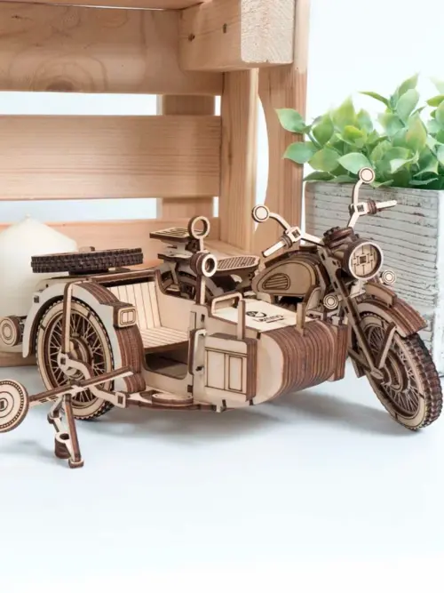 Сборная модель из дерева Мотоцикл с коляской Уран