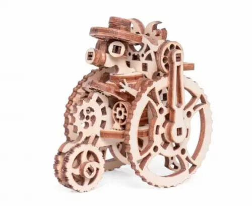 Все детали выполнены из качественной древесины и имеют сильный насыщенный запах дерева. Наборы укомплектованы клеем ПВА и наждачной бумагой. Любой конструктор после сборки можно раскрасить акриловыми и гуашевыми красками, но даже без этого в результате получается полноценная красивая игрушка с подвижными элементами.