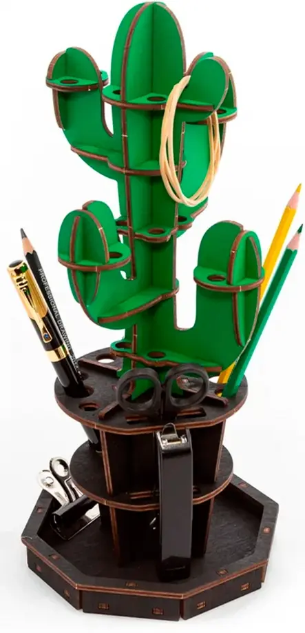 Настольный органайзер Кактус, зеленый. Сборная деревянная модель